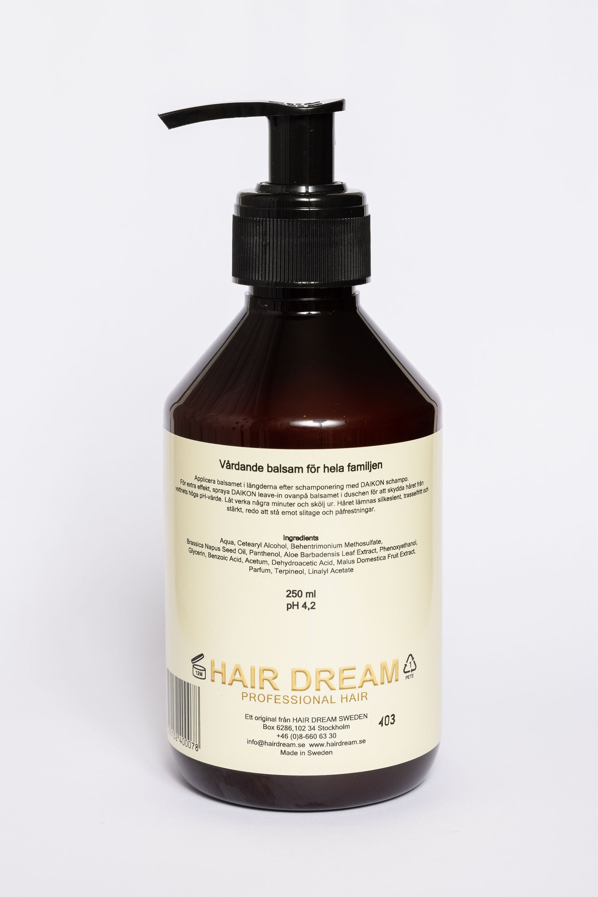 Använd med fördel detta balsam efter tvätt med DAIKON schampo för att ge håret intensiv återfuktning och skydd. Balsamet vårdar och stärker längderna, gör håret silkeslent, trasselfritt och glansigt samtidigt som det motverkar slitage och brytning. För extra effet, spraya DAIKON Leave In ovanpå balsamet i duschen innan du sköljer ur - Detta hjälper till att stänga ute vattnet från hårfjällen som har ett högre pH-värde än håret och bevarar då dess naturliga balans.